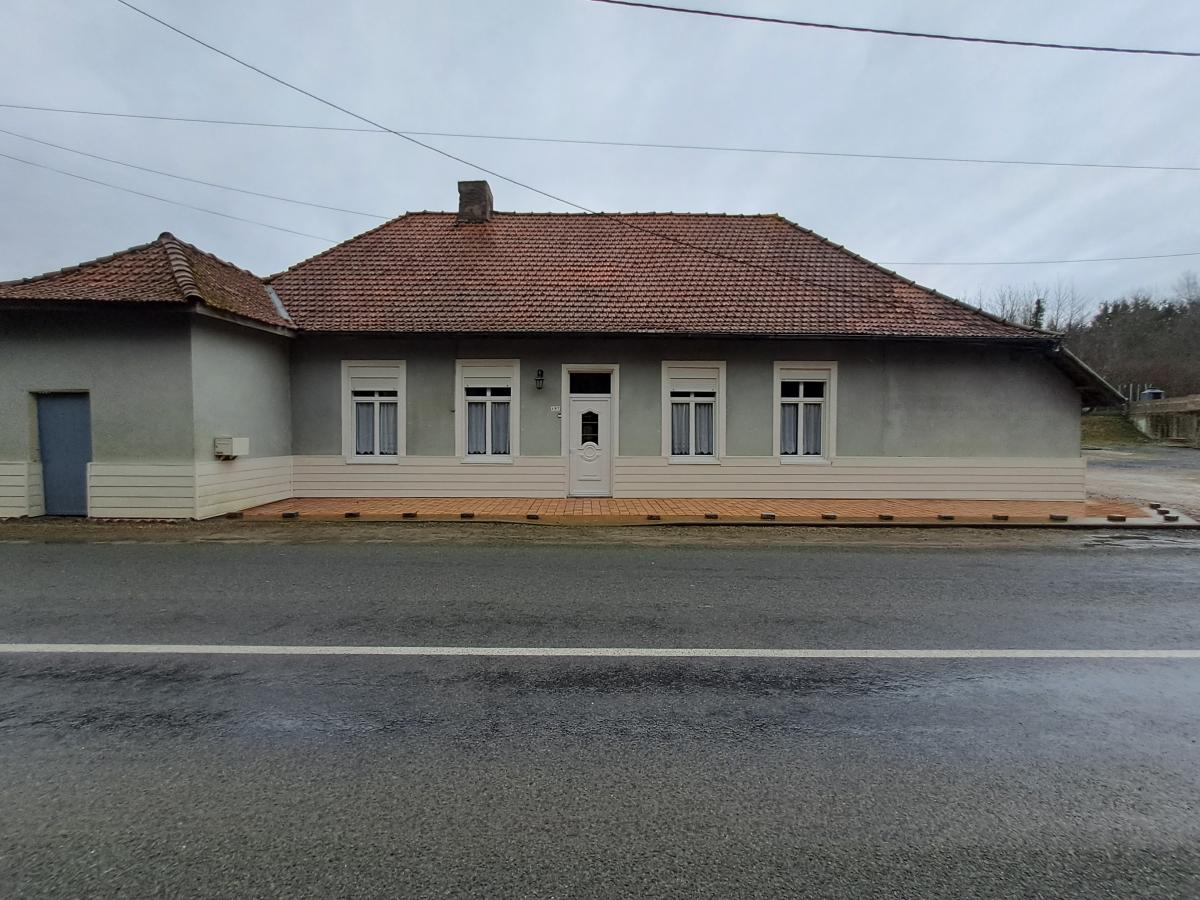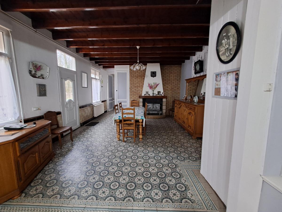 Salon / séjour, cuisine, trois chambres, salle d'eau avec WC, véranda,